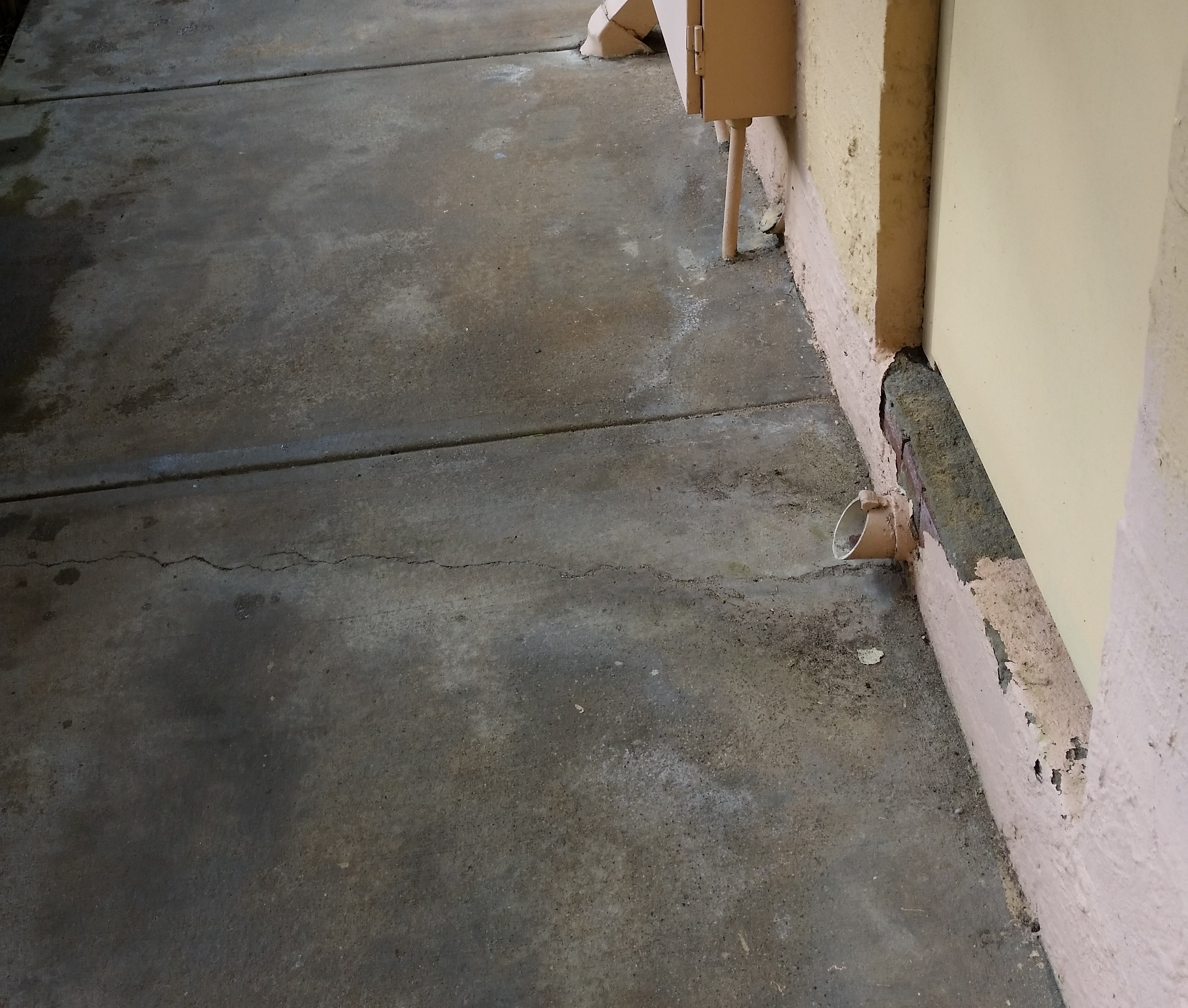 The property manager has arranged repairs and water is no longer leaking onto the path.