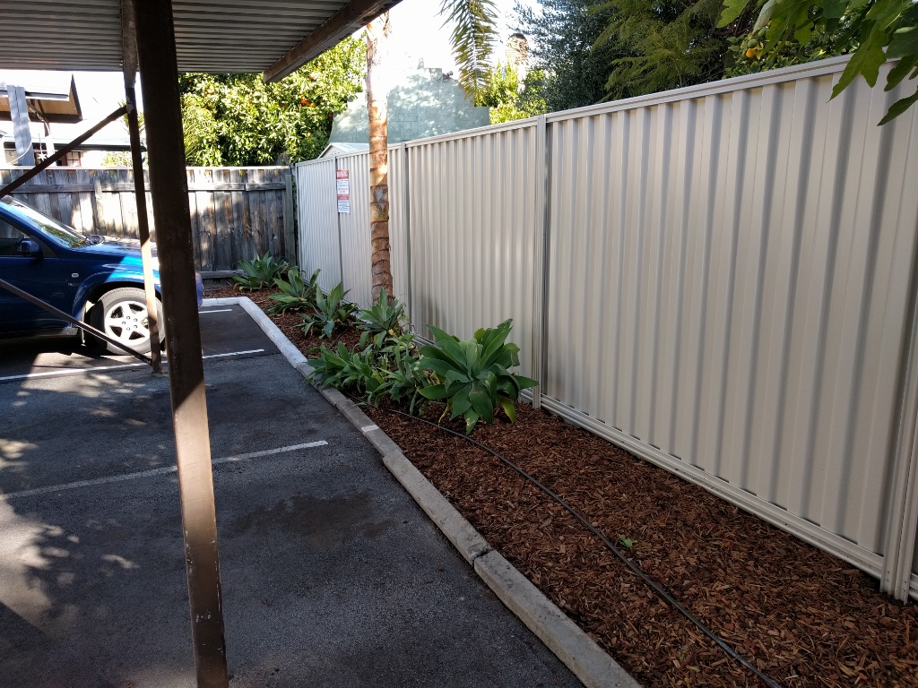 Remove large tree trunk from garden bed against West boundary.