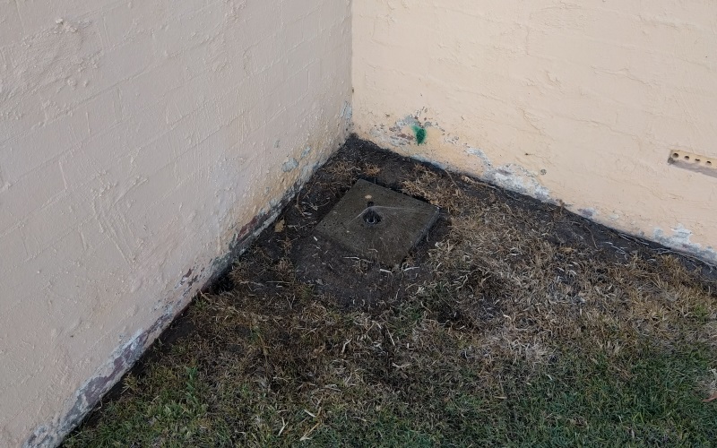 Note that as this sprinkler was in a lawn area and was not a pop-up (mounted level with lawn). The piping was modified and a pop-up has been installed so that the grass can be easily cut around the sprinkler.