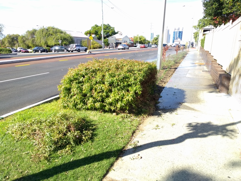 The bush on the verge is pruned from time to time to improve visibility of oncoming traffic.