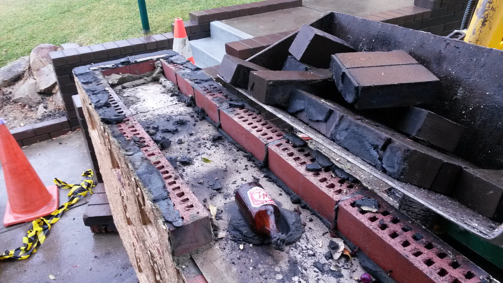 Whilst the demolition of the old letterboxes was taking place a bottle with a note inside was found inside one of the concealed sections of the letterboxes.